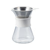 This compact coffee maker contains a dripper with an all stainless steel double mesh filter and a decanter-style server.